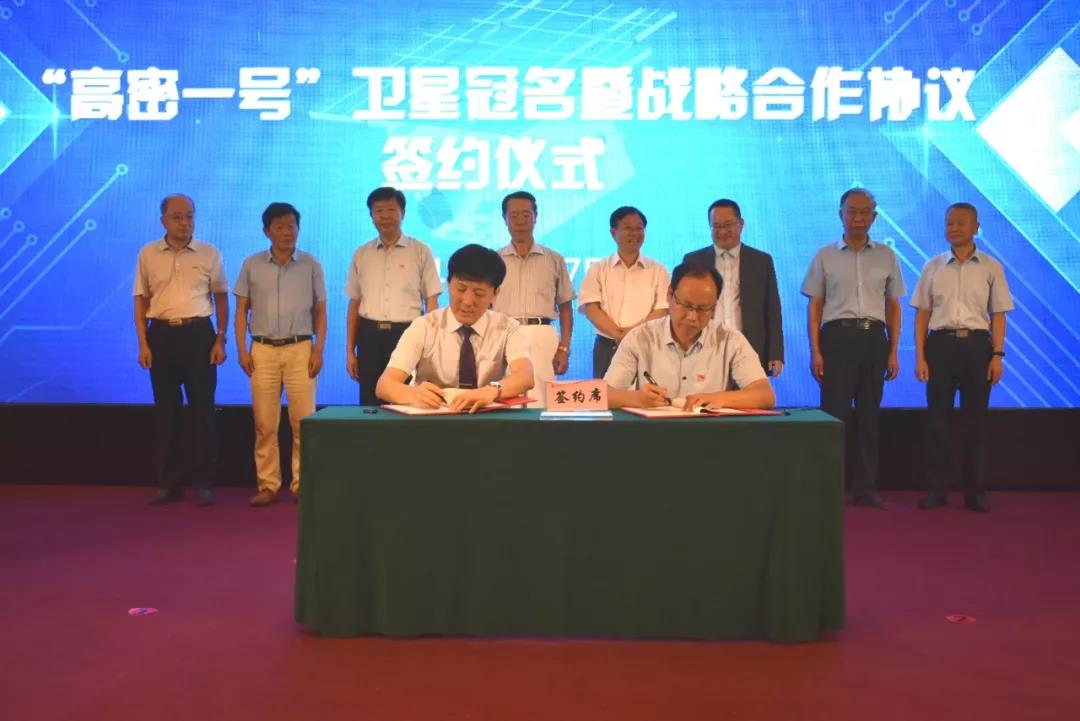 8月17日,“高密一号”卫星冠名暨战略合作协议签约仪式在高密市市会议中心隆重举行,高密市委书记卞汉林,市委副书记、市长王文琦,青岛科技大学党委副书记李庆领,珠海欧比特宇航科技股份有限公司董事长颜军出席并共同为“高密一号”卫星模型揭幕,三方均表示将利用好“高密一号”卫星数据资源,共同促进高密市经济发展。