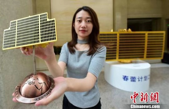工作人员展示“春蕾计划之星” 卫星模型。 供图 摄