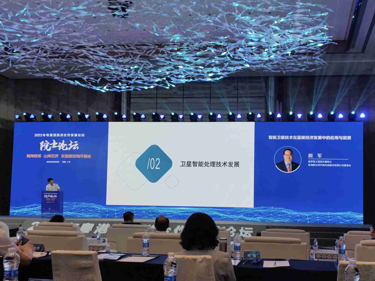 5月20日,2023年粤港澳海洋合作发展论坛院士论坛在广州南沙举行,相关政府部门、领域内知名院士与专家、行业内知名企业家、金融家等行业嘉宾等,围绕“陆海统筹、山海互济,全面建设海洋强省”的主题共享业内最新前景资源信息,共探广东海洋经济高质量发展新空间。俄罗斯工程院外籍院士、珠海欧比特宇航科技股份有限公司董事长颜军,委托技术团队负责人张强受邀作“智能卫星技术在蓝碳经济发展中的应用与前景”主题分享。