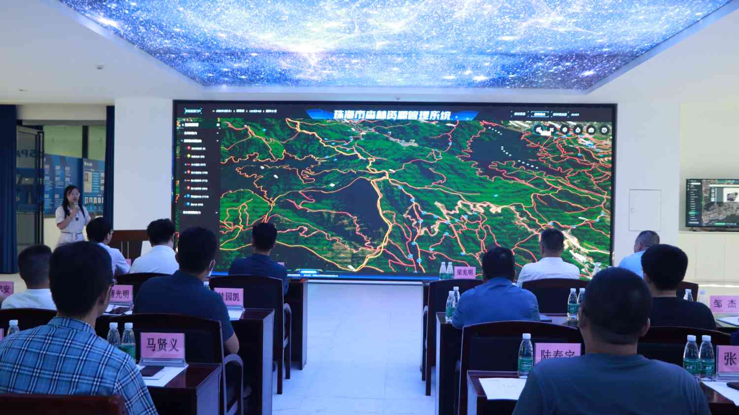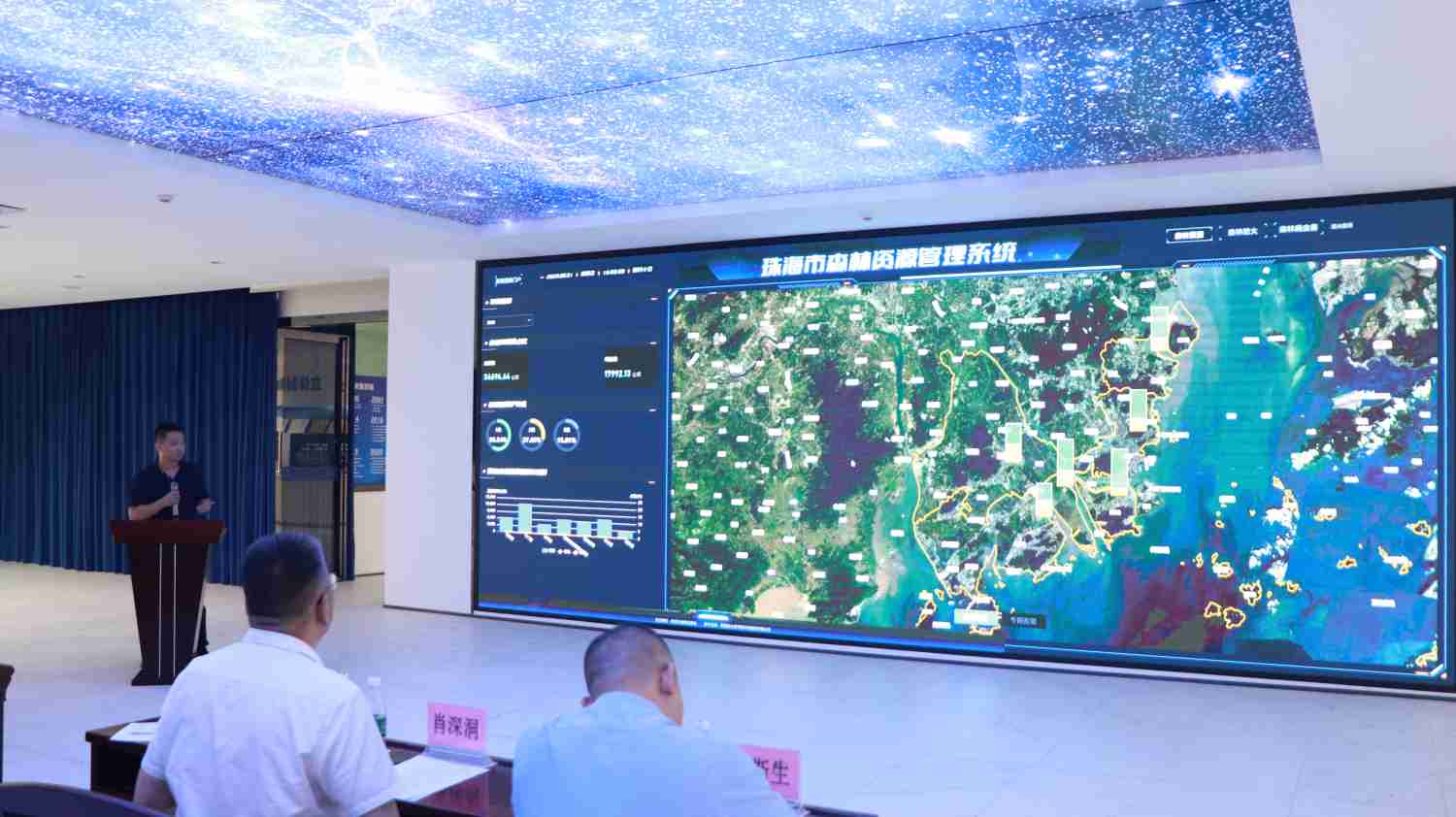 随后,公司卫星大数据副部长肖文斌就珠海市森林资源管理系统展开介绍,举例了利用卫星监测火点,系统实现二三维一体化,系统对森林资源、森林防火、森林病虫害三板块进行数据治理等多个方面的内容,并介绍了通过相关APP使得森林资源管理系统更加便利与便捷的智慧化应用。为了使在座领导更直观地感受珠海市森林资源管理系统的功能,现场还播放了系统介绍短片,由浅入深对该系统进行详尽的一期建设成果展示。