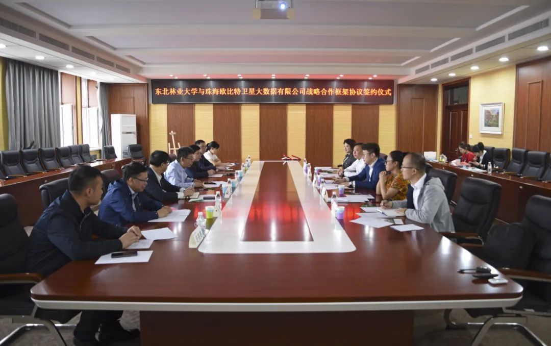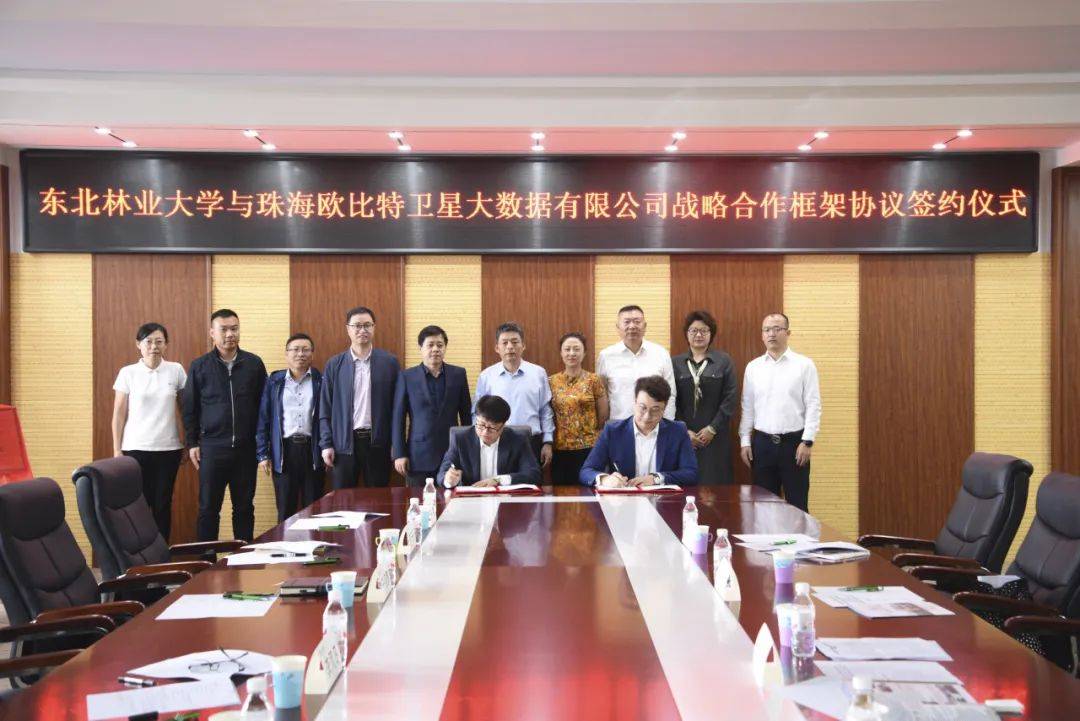 会上,双方签署战略合作框架协议,为校企双方在相关领域的进一步合作奠定了良好基础;共同为“东北林业大学—珠海欧比特卫星大数据有限公司智慧林业联合研发中心”揭牌。