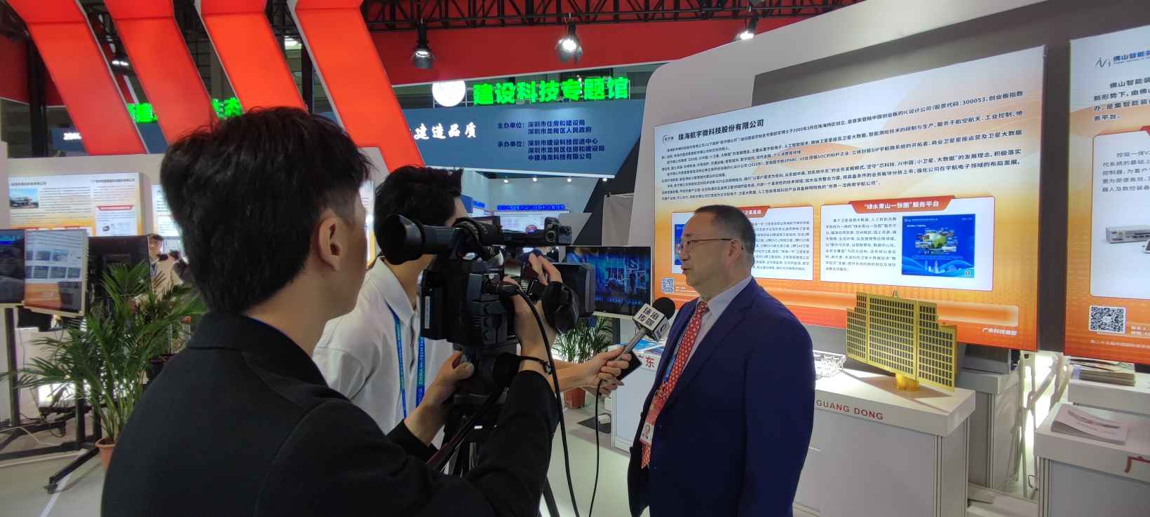 本次高交会上,航宇微展台借助宣传视频的视听效果、产品应用及解决方案海报的详实呈现、芯片实物及卫星模型的直观感受,重点展示了“珠海一号”遥感微纳卫星星座及卫星大数据应用、宇航电子、人工智能三大业务板块中多项创新性技术研发成果,工作人员向每一位走进航宇微展位的领导、嘉宾、观众详细介绍、耐心解答,参观者对公司表现出浓厚兴趣,同时吸引了媒体前来报道。