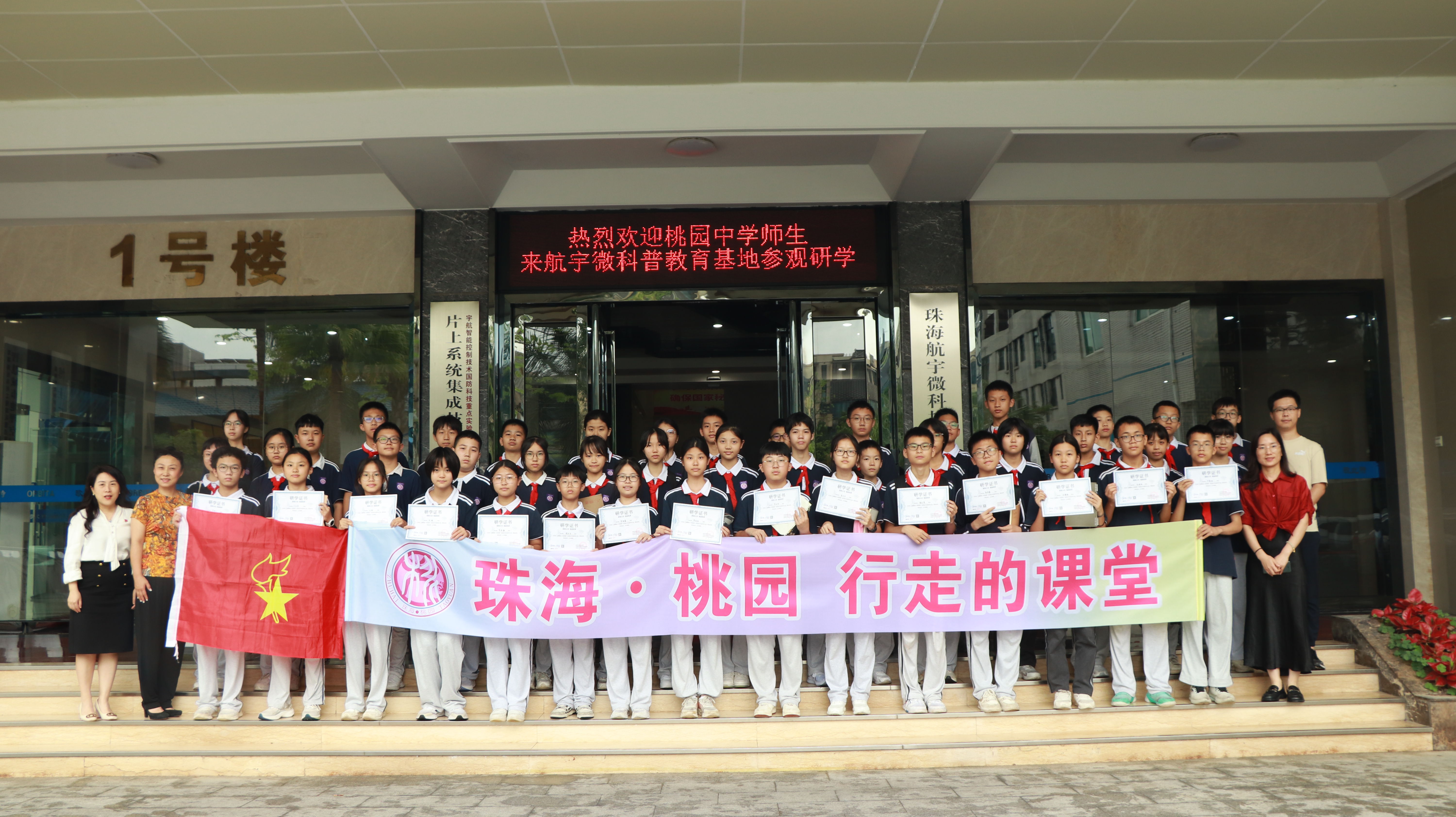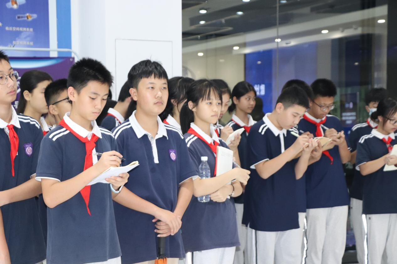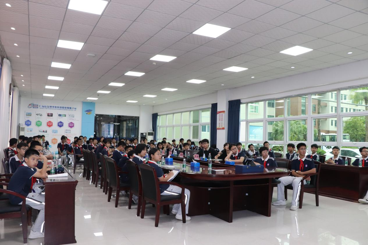 在第九个中国航天日来临之际,为弘扬中国航天精神,培养青少年科学探索意识和爱国情怀,4月19日下午,珠海市紫荆中学桃园校区(以下简称“珠海市桃园中学”)师生一行约90人在邱艺施副校长的带领下走进航宇微科普教育基地,开启了一场“探索太空·强国筑梦”的主题研学活动。通过参观航宇微公司展厅、航天主题讲座与交流等环节,向学生们普及现代航空航天的知识,激发同学们的学习热情,点燃少年航天强国梦。