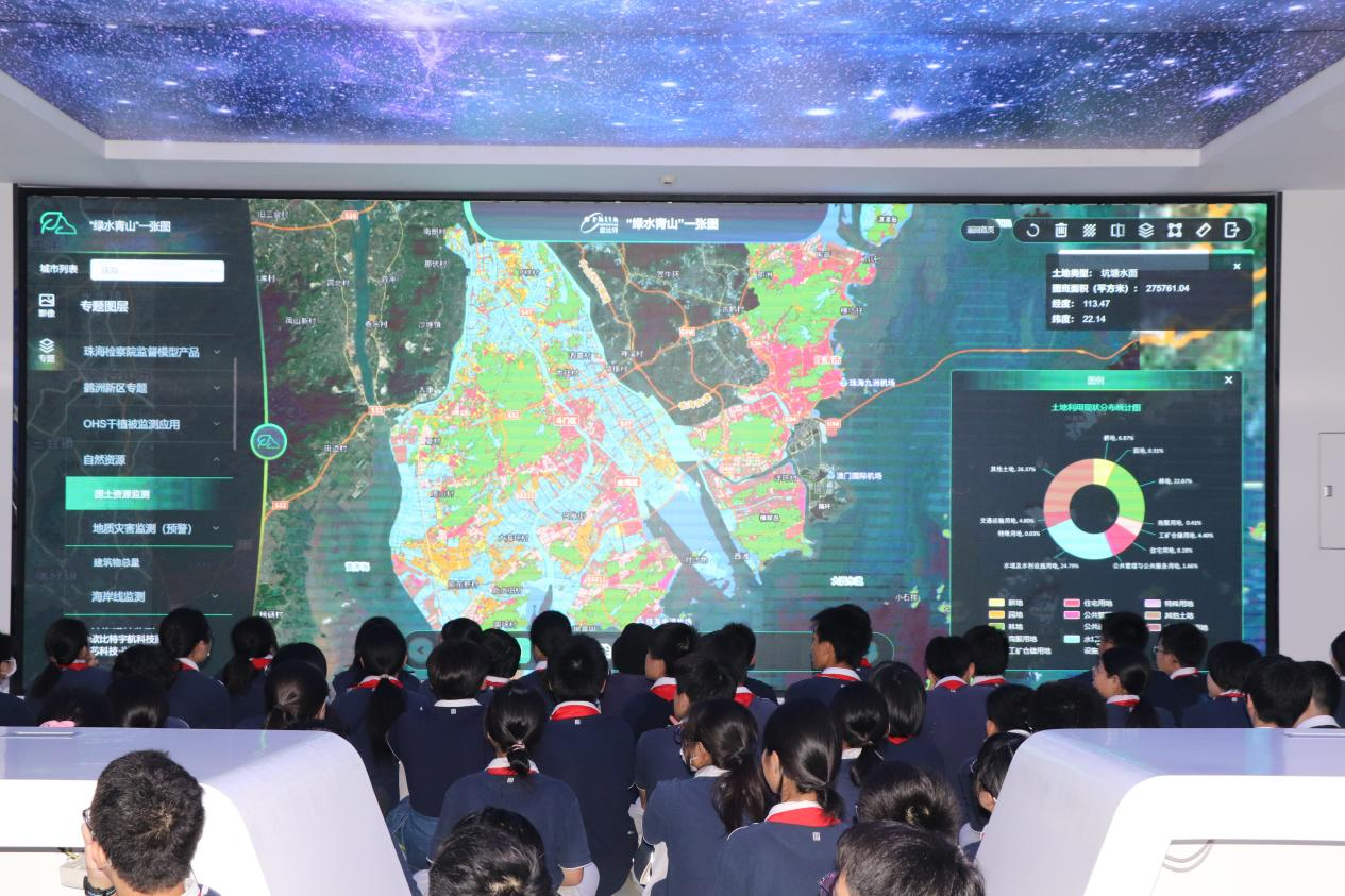 随后,大家来到了基于卫星大数据打造的“绿水青山一张图”服务平台大屏幕前,同学们对屏幕上的内容表现出了强烈的好奇心和求知欲,席地而坐,耐心倾听公司大项目办主任徐红和企划品牌部经理周娜对于卫星遥感在国土资源监测、海洋监测、森林病虫害监测、农作物种类识别等方面的讲解,不时发出惊叹与欢呼。