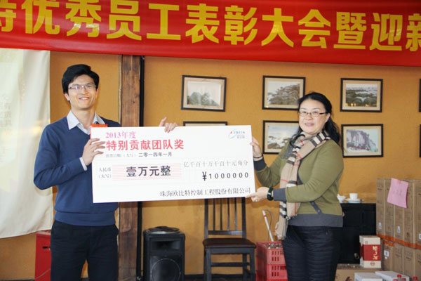 接下来,颜副总激情洋溢地宣读2013年度特别贡献团队、优秀员工名单和获奖理由。公司全体员工为获奖的优秀员工和特别贡献团队送上了最真诚的祝福和最热烈的掌声。