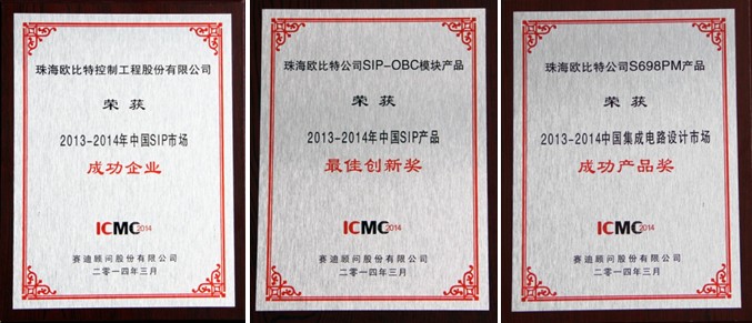 热烈祝贺珠海欧比特公司在“第八届(2013年度)中国半导体创新产品和技术评选”中,被授予“中国SIP和集成电路设计年度成功企业”称号,同时,珠海欧比特公司的SIP-OBC模块产品和S698PM产品在此次评选中分别获得“SIP产品最佳创新奖”...