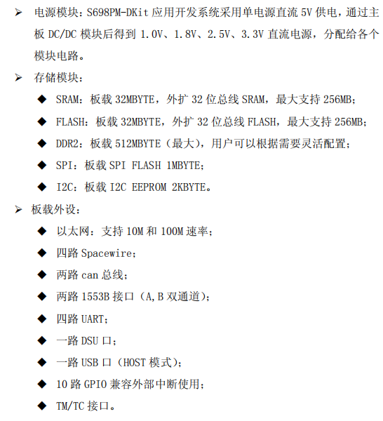 S698PM芯片应用开发系统简称为S698PM-DKit,S698PM-DKit开发平台主要由开发主板、接口板、电源适配器、机箱及相应的测试电缆等附件构成。