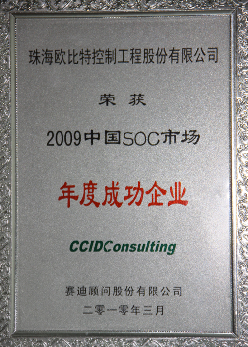 欧比特公司获得“2009中国SOC市场年度成功企业”称号和“2009中国SIP市场年度创新企业”称号