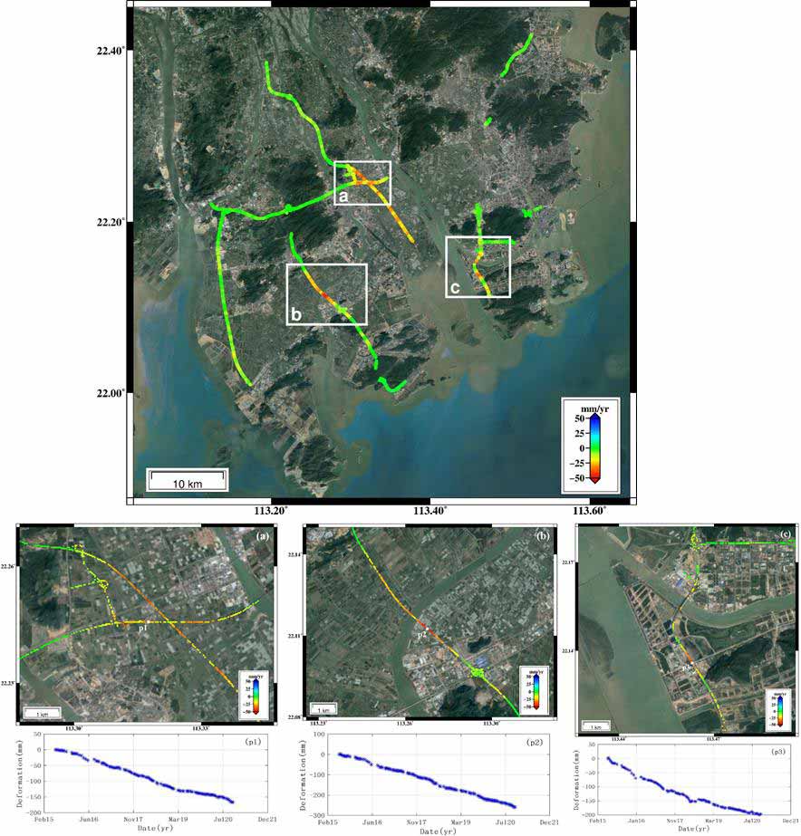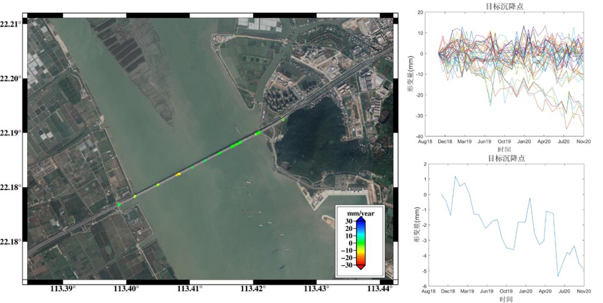 基于雷达影像数据以规律周期对珠海市高速公路稳定性进行监测,精确测算形变速率并估测其发展趋势,及时发现可能因地面沉降导致的高速公路快速沉降点,通过长时间连续监测结果为制定有效措施提供参考。