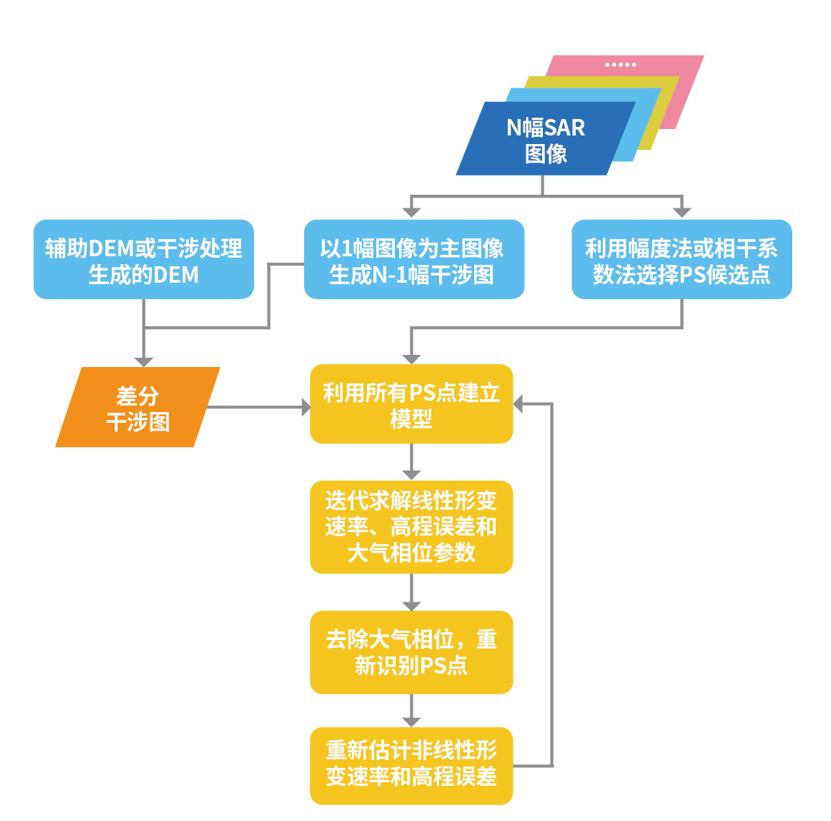 雷达影像空间分辨率高,适合大区域高密度的形变监测,雷达干涉测量是一种经济、高效的技术手段,对高速公路进行高频率监测,能够评估其稳定性。利用PS-InSAR技术调查珠海市高速公路稳定性,首先对获取的原始SLC影像进行精确配准,去除外部地形相位生成差分干涉图;再根据某种指标(如整幅离差指数、相干系数和相位稳定性等)从面状的监测对象中挑选出在长期保持相位(或幅度)稳定的永久散射体(PS点);然后依据一定的原则(如Delaunay三角网)将探测得出的所有PS点布设成PS网络。通过建立相邻PS点间的差分相位函数模型,求得PS基线上的形变速率差及高程改正值差。