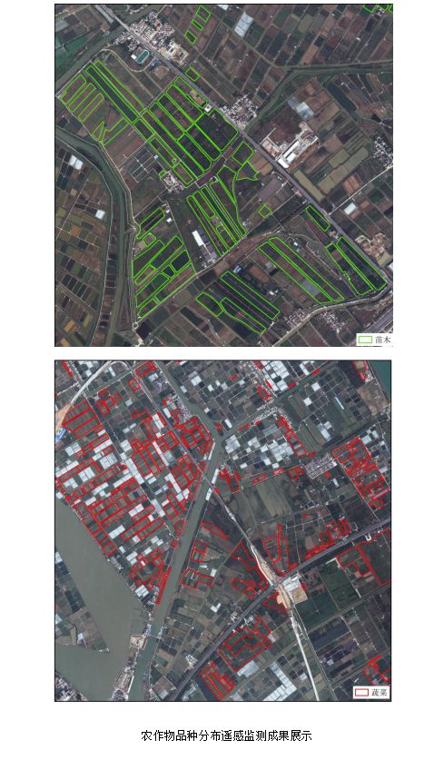 监测服务内容:提取全市农作物品种(水稻、果树、苗木、蔬菜)分布情况,统计其具体位置及面积。