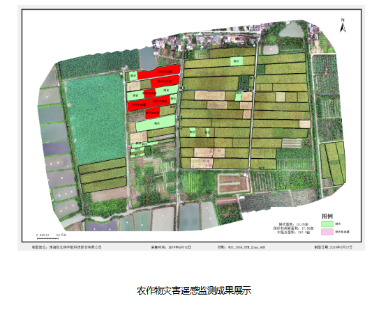 利用无人机遥感技术,采集高分辨率和多光谱数据,对发生灾害的地区进行监测,快速提取出来农作物的受灾害情况和类型,并统计受灾面积,为相关部门快速响应灾害情况及处理提供可靠的数据服务。